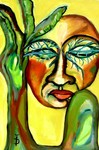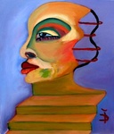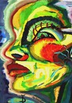 A portrait of a woman painted in  expressionist style.