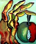 The hand and the apple  are creations of Earth.